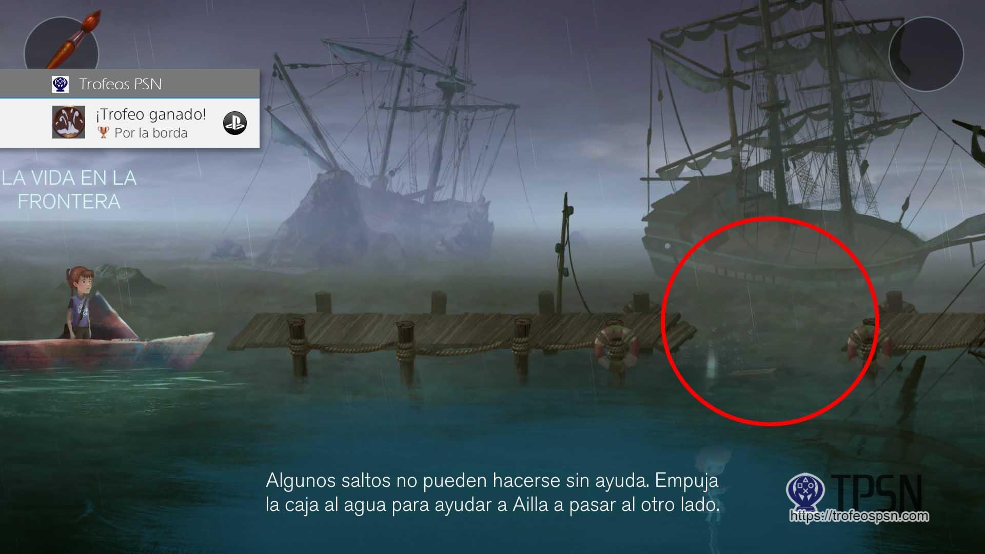 Bajaremos de la Canoa y en el primer trozo de puente roto donde tendremos que tirar una caja de madera al agua para que podemos cruzar con