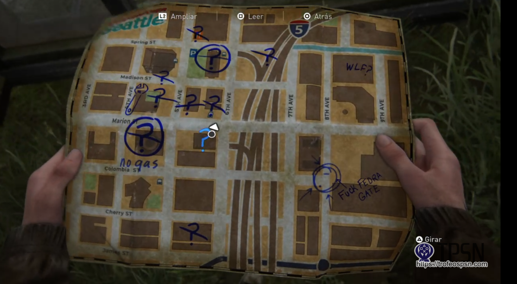Lo que el trofeo cuenta como «ubicación» no está claramente definido, entendemos que son todas las ubicaciones que Ellie marca en el mapa.